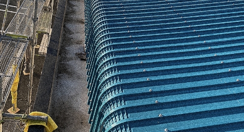 建物の屋根のサイズに合わせてあらかじめ加工した鋼板を取り付けるだけ。シンプルな施工で、瓦などの他の屋根素材に比べて工期を短縮できるのが特徴です。
